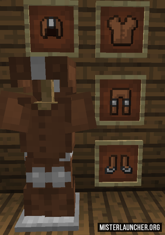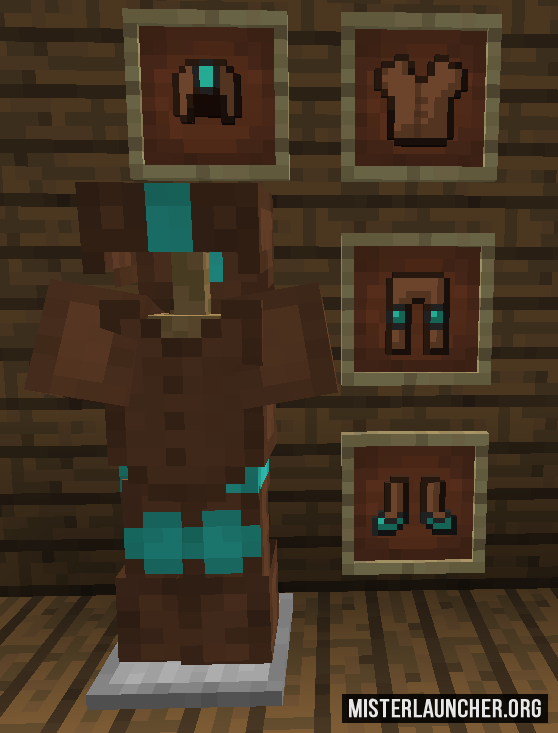 Мод позволяет использовать железо и алмазы для добавления в кожаную броню — она будет не намного прочнее стандартного варианта, но вы сможете красить её в любые цвета. Также вы можете улучшать такие "совмещения", и в итоге получить равную по прочности алмазной одёжку, но с возможностью кастомизации.
